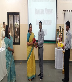 The inaugural ceremony, held in the Multi-Purpose Hall, was graced by the esteemed presence of Mr. Chetan Tarare, Chairman, School Management Committee who inaugurated the exhibition as the Chief Guest. Students of Classes VI and VII offered a soulful rendition of Saraswati Vandana and set a serene and reverent tone by singing a composition, “Khuli Nazar Se Dekho, Kholo Maan Ke Dwaar”, which celebrated the spirit of inquiry and creativity. Ms. Archana Todkar, Head of the Social Science Department, extended a warm welcome. Principal Mr. Hari Prasad Vaishnav presented a memento to the Chief Guest as a token of gratitude. The occasion was attended by the Academic Coordinators Mr. Manoj Chaturvedi and Ms. Sunita Sharma, Head of Administration Mr. Shyam Kale, along with staff and students. In his keynote address, the Chief Guest applauded the school’s efforts in fostering scientific awareness and curiosity among young learners. He encouraged students to embrace hands-on exploration, creativity, and the application of scientific principles in real-life scenarios. He emphasized that innovation and practical knowledge are key in today’s rapidly evolving world and motivated students to be lifelong learners and thinkers. The inaugural ceremony concluded with a vote of thanks by Ms. Nabomita Sarkar, primary teacher.